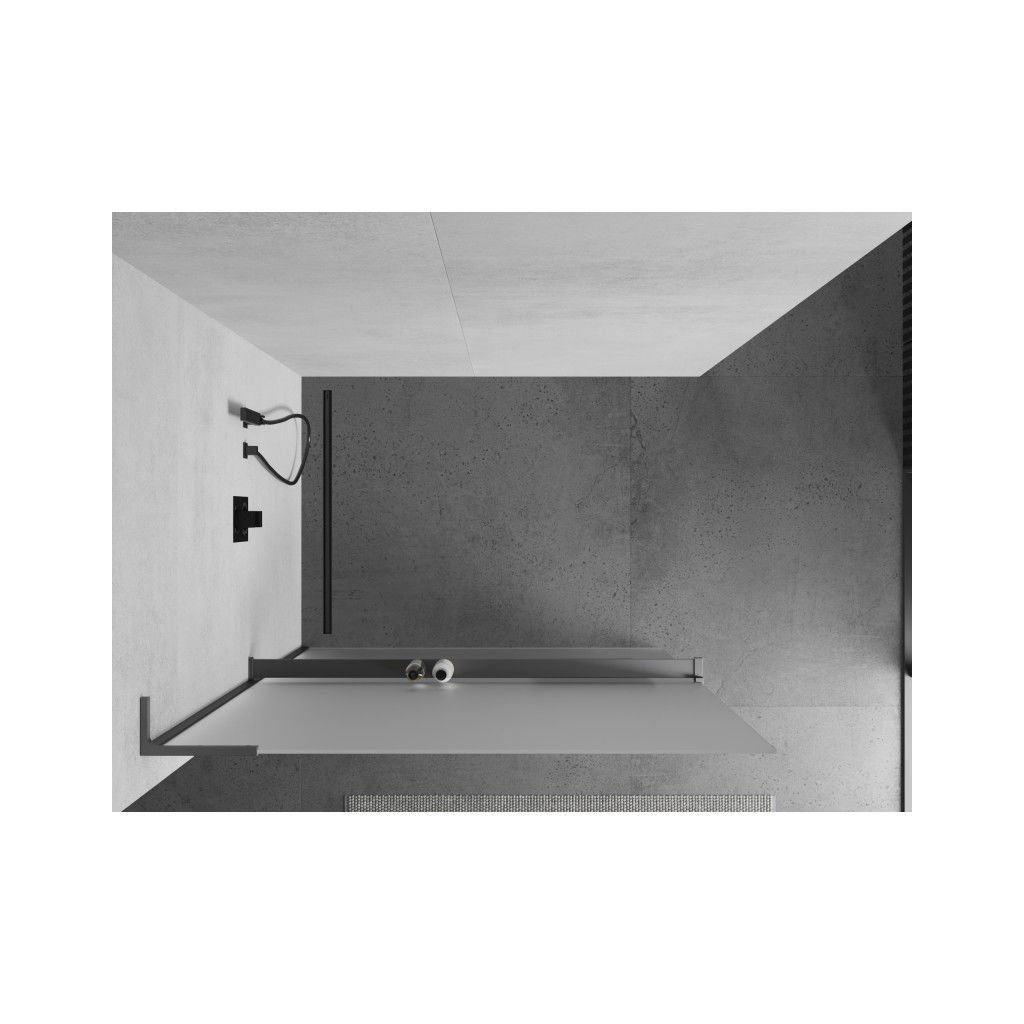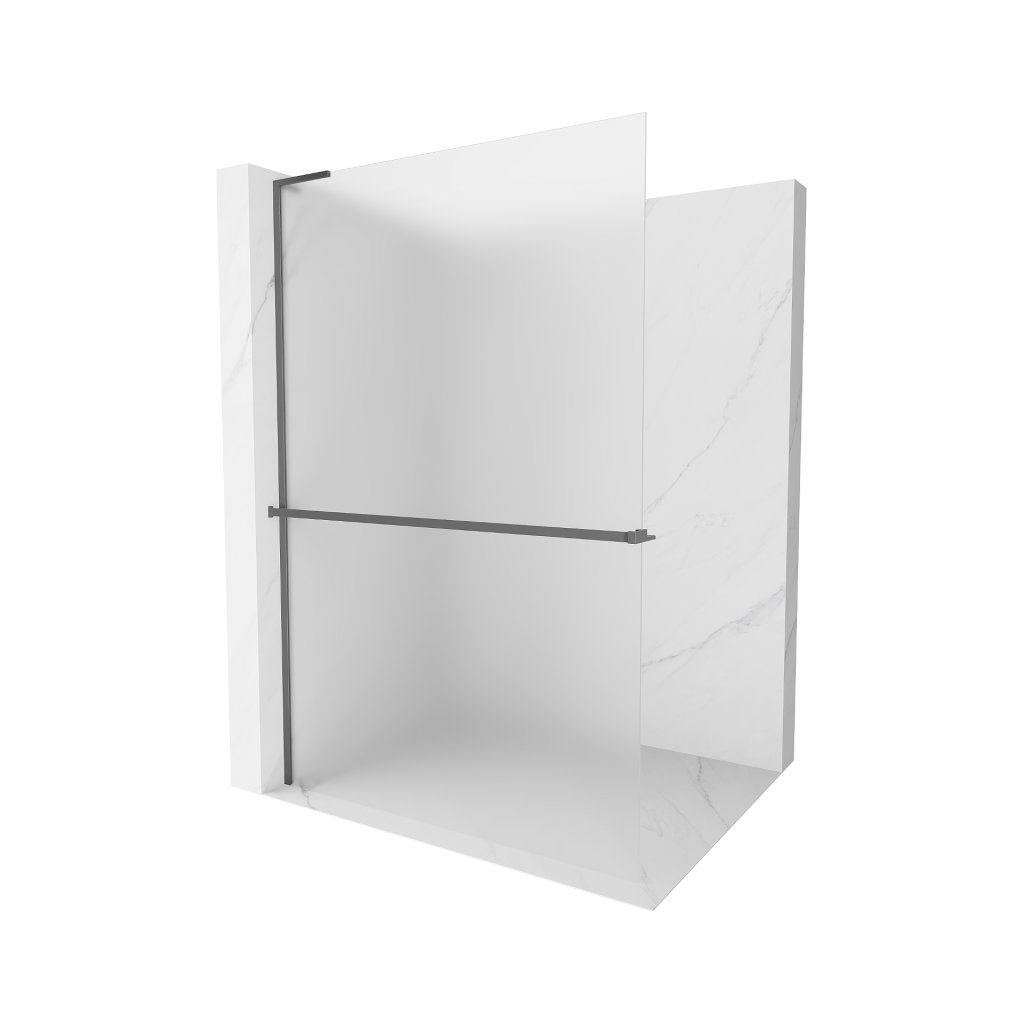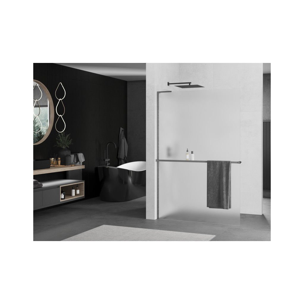 Mexen Kioto+ L, sprchová zástena Walk-In s poličkou a vešiakom 100 x 200 cm, 8mm sklo námraza, grafitový profil, 800-100-123-95-30