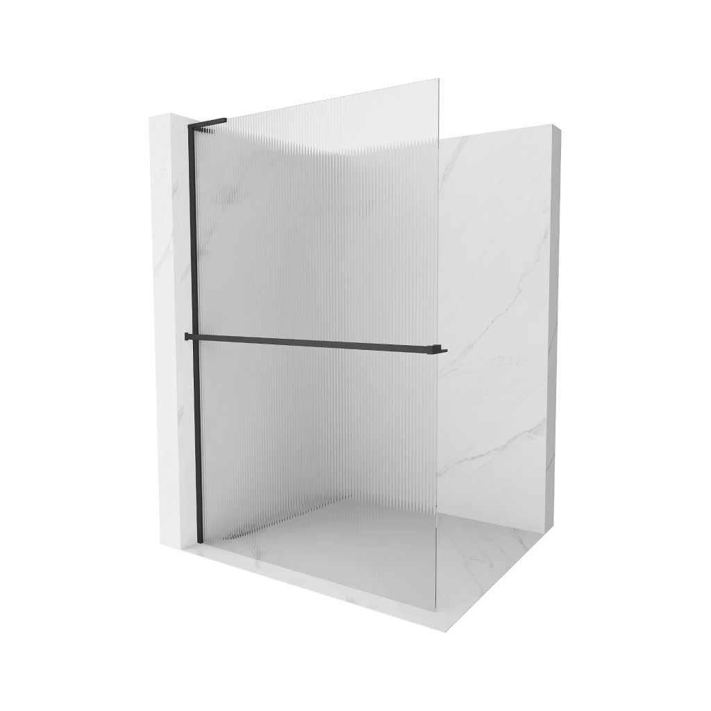 Mexen Kioto+ L, sprchová zástena Walk-In s poličkou a vešiakom 100 x 200 cm, 8mm sklo s rebrovým vzorom, čierny profil, 800-100-123-70-09