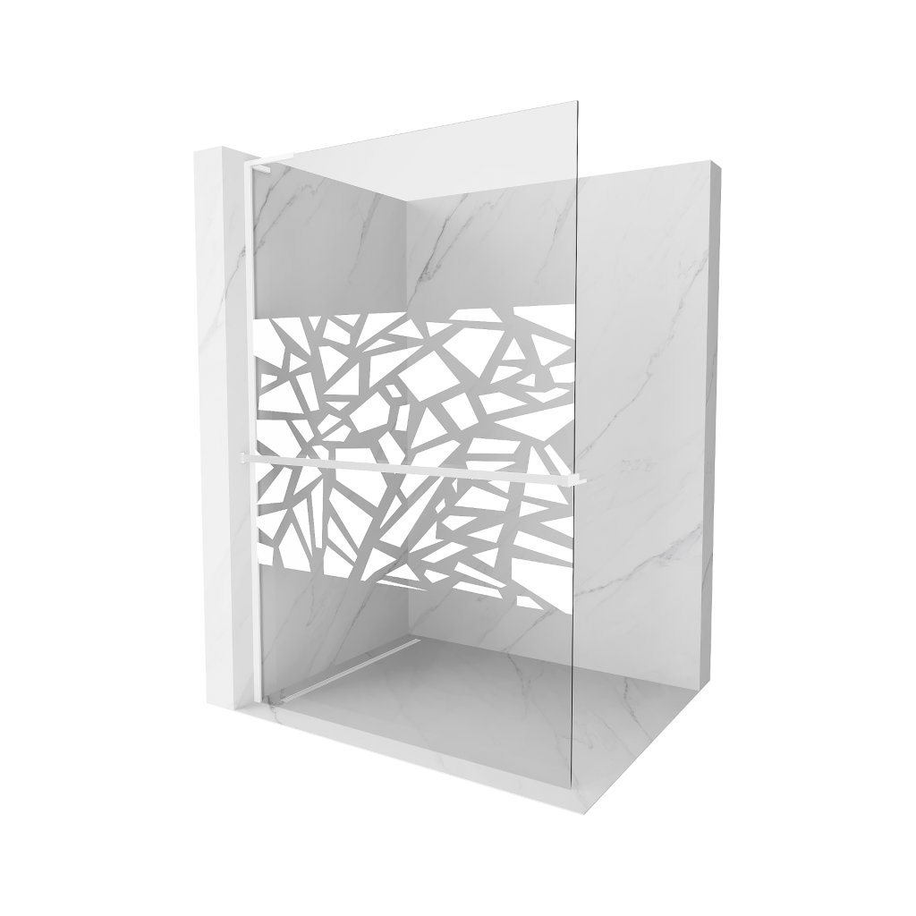 Mexen Kioto+ L, sprchová zástena Walk-In s poličkou a vešiakom 110 x 200 cm, 8mm číre sklo biely vzor, biely profil, 800-110-123-20-85