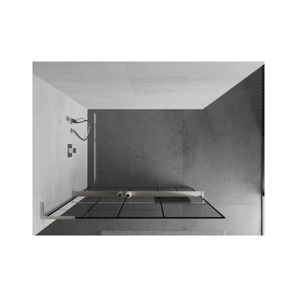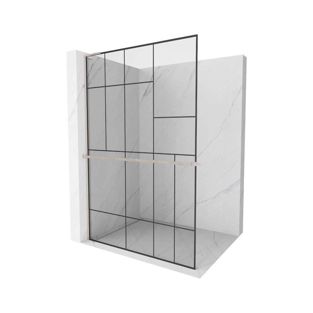 Mexen Kioto+ L, sprchová zástena Walk-In s poličkou a vešiakom 110 x 200 cm, 8mm číre sklo čierny vzor, brúsená oceľ profil, 800-110-123-97-78