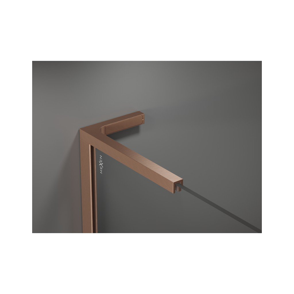 Mexen Kioto+ L, sprchová zástena Walk-In s poličkou a vešiakom 110 x 200 cm, 8mm číre sklo čierny vzor, medený matný profil, 800-110-123-65-77