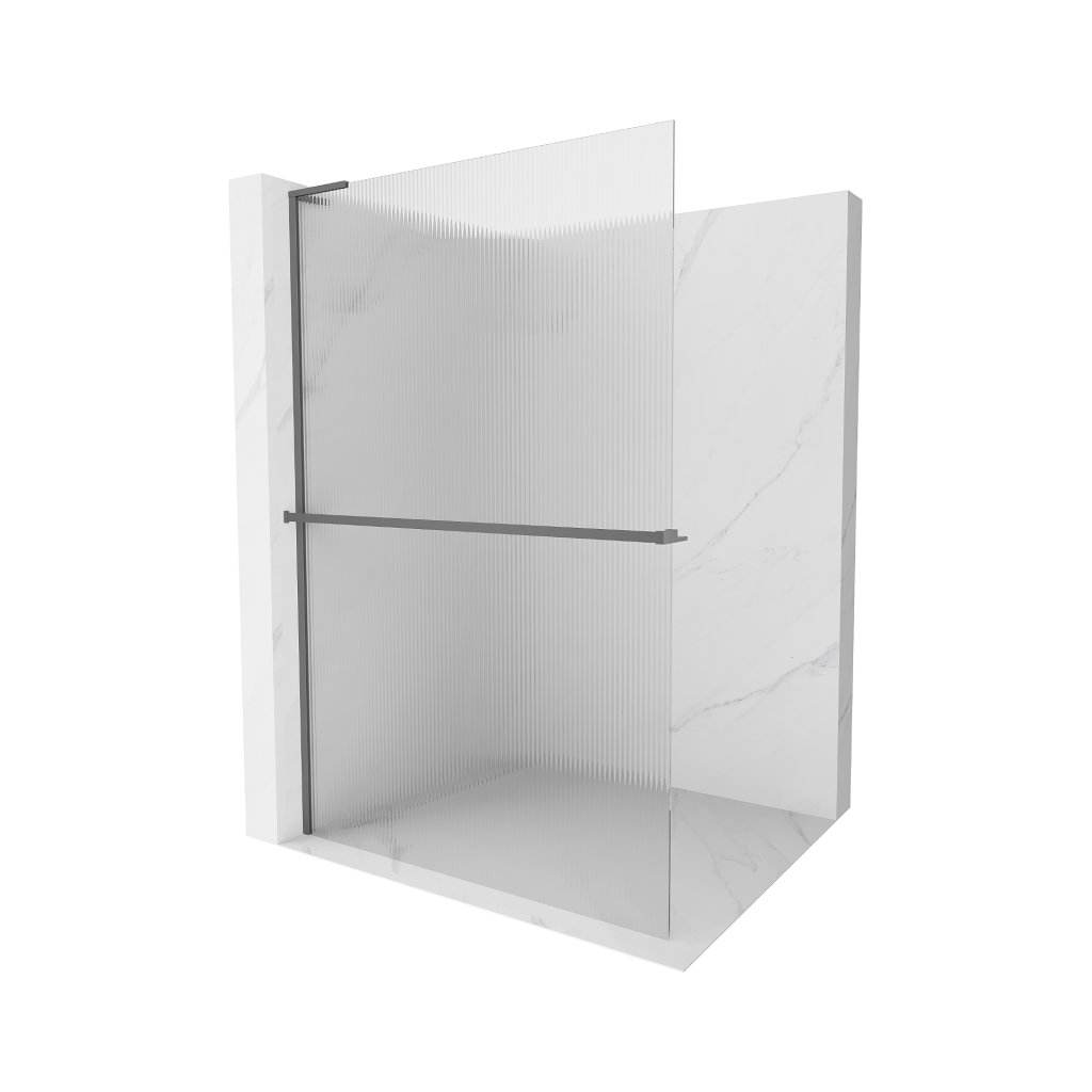 Mexen Kioto+ L, sprchová zástena Walk-In s poličkou a vešiakom 110 x 200 cm, 8mm sklo s rebrovým vzorom, grafitový profil, 800-110-123-95-09