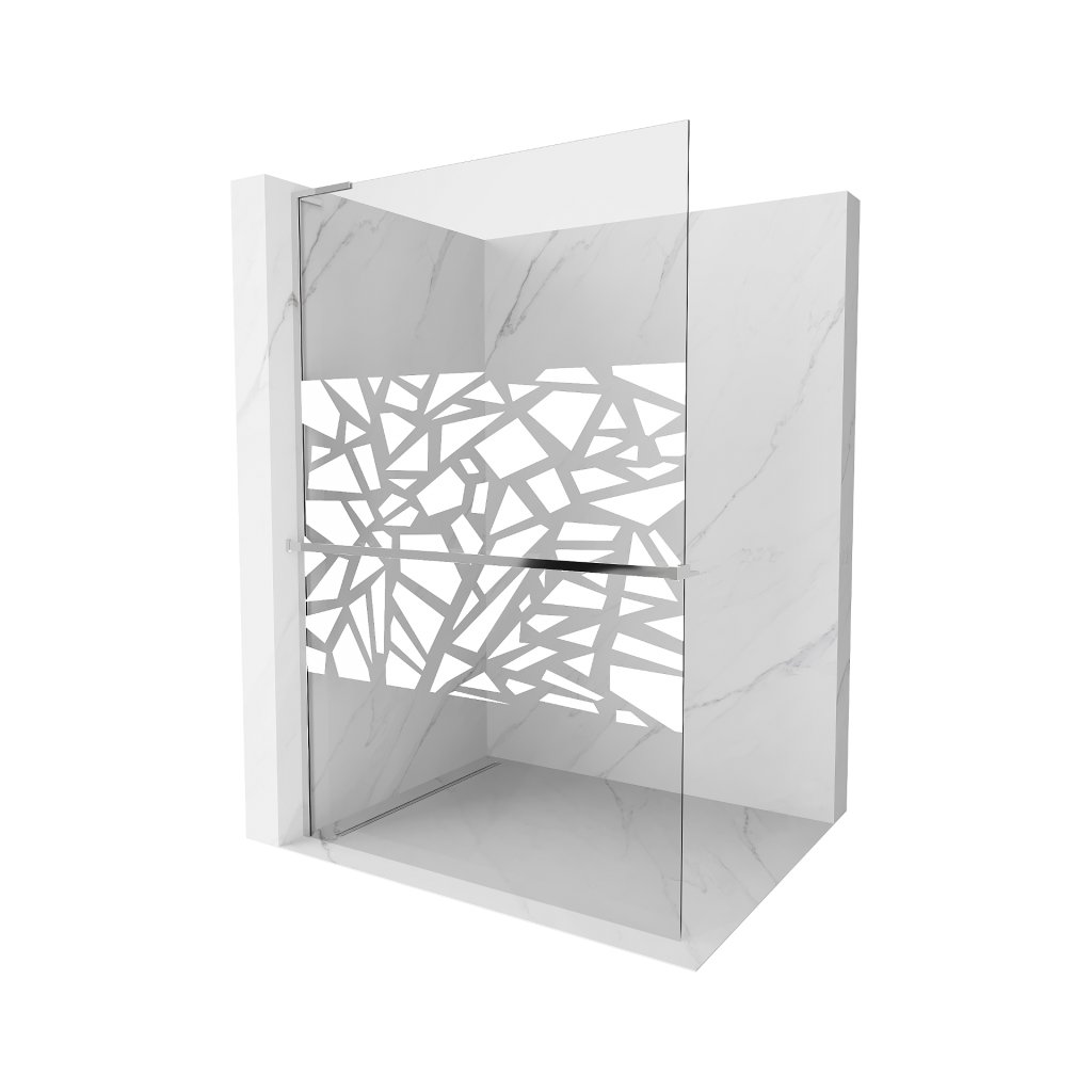 Mexen Kioto+ L, sprchová zástena Walk-In s poličkou a vešiakom 120 x 200 cm, 8mm číre sklo biely vzor, chrómový profil, 800-120-123-01-85