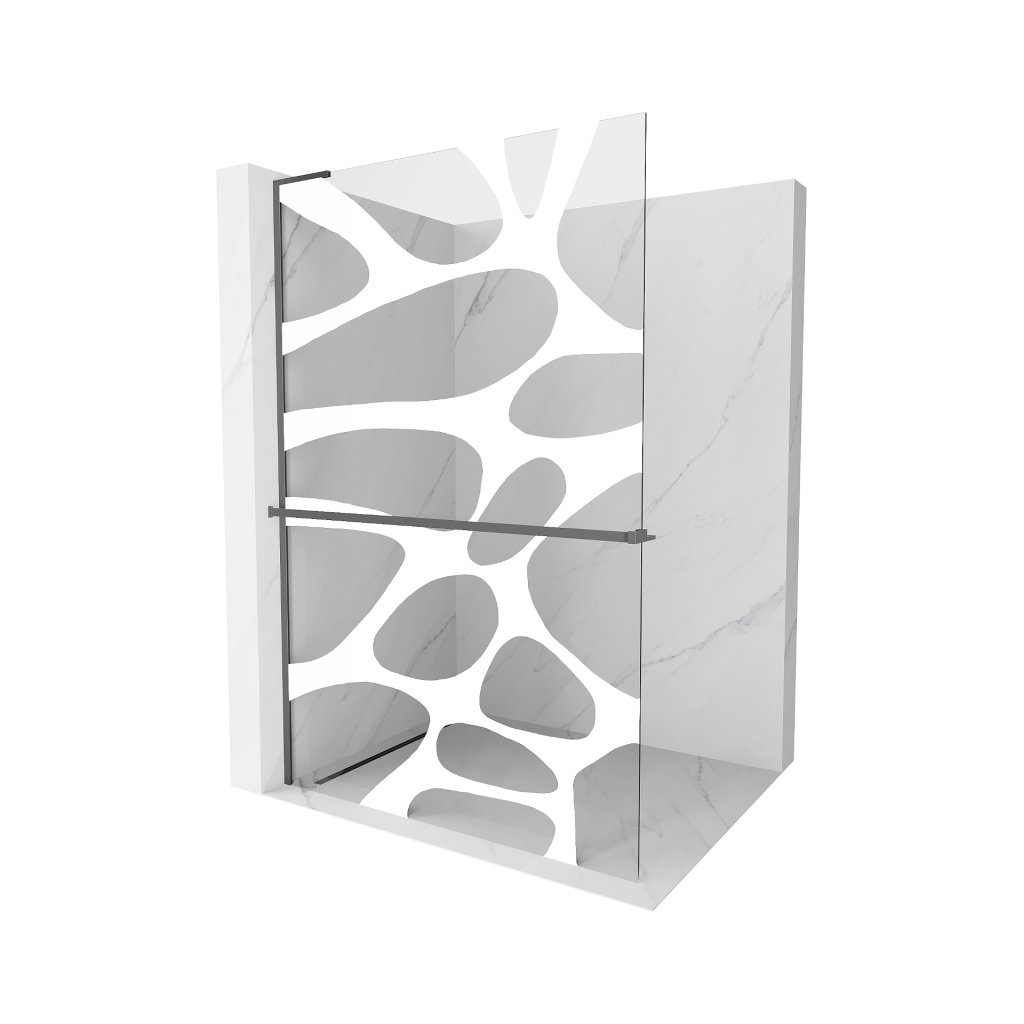 Mexen Kioto+ L, sprchová zástena Walk-In s poličkou a vešiakom 120 x 200 cm, 8mm číre sklo biely vzor, grafitový profil, 800-120-123-95-97