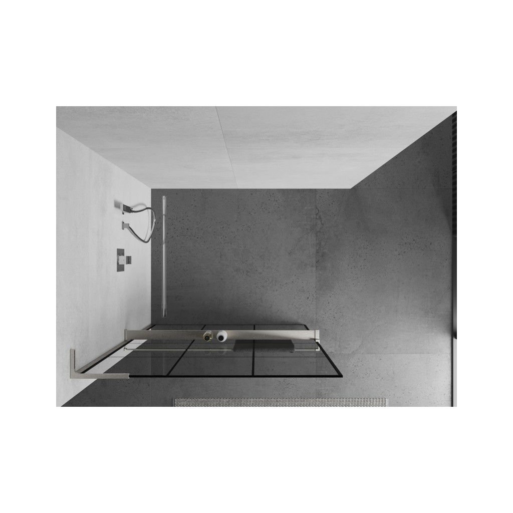 Mexen Kioto+ L, sprchová zástena Walk-In s poličkou a vešiakom 120 x 200 cm, 8mm číre sklo čierny vzor, brúsená oceľ profil, 800-120-123-97-77