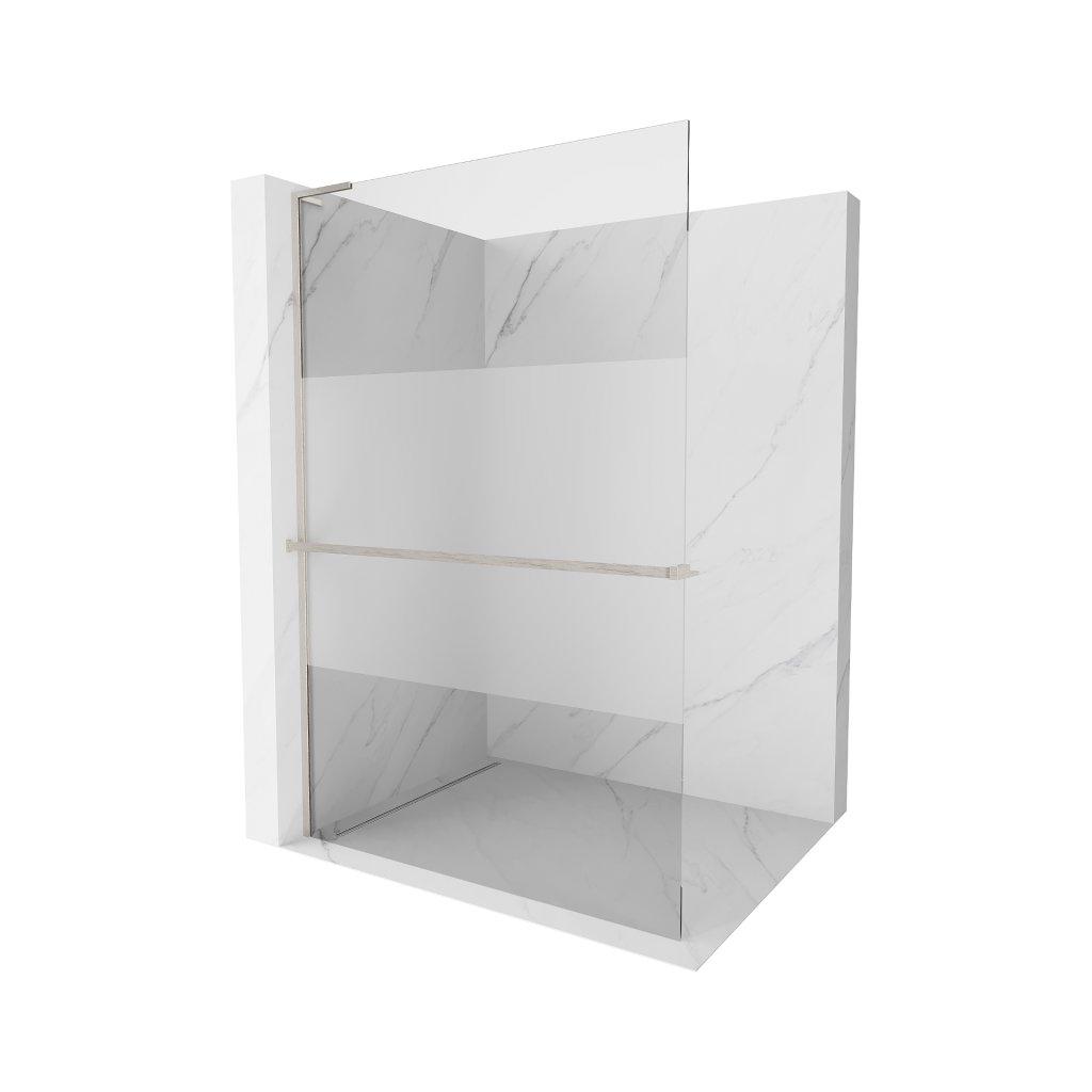Mexen Kioto+ L, sprchová zástena Walk-In s poličkou a vešiakom 120 x 200 cm, 8mm číre sklo-námraza, brúsená oceľ profil, 800-120-123-97-35