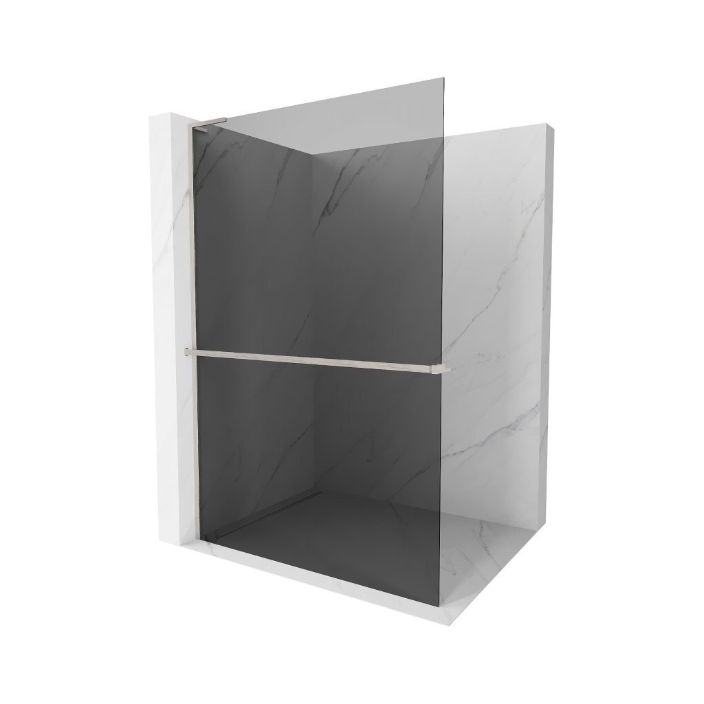 Mexen Kioto+ L, sprchová zástena Walk-In s poličkou a vešiakom 120 x 200 cm, 8mm šedé sklo, brúsená oceľ profil, 800-120-123-97-40