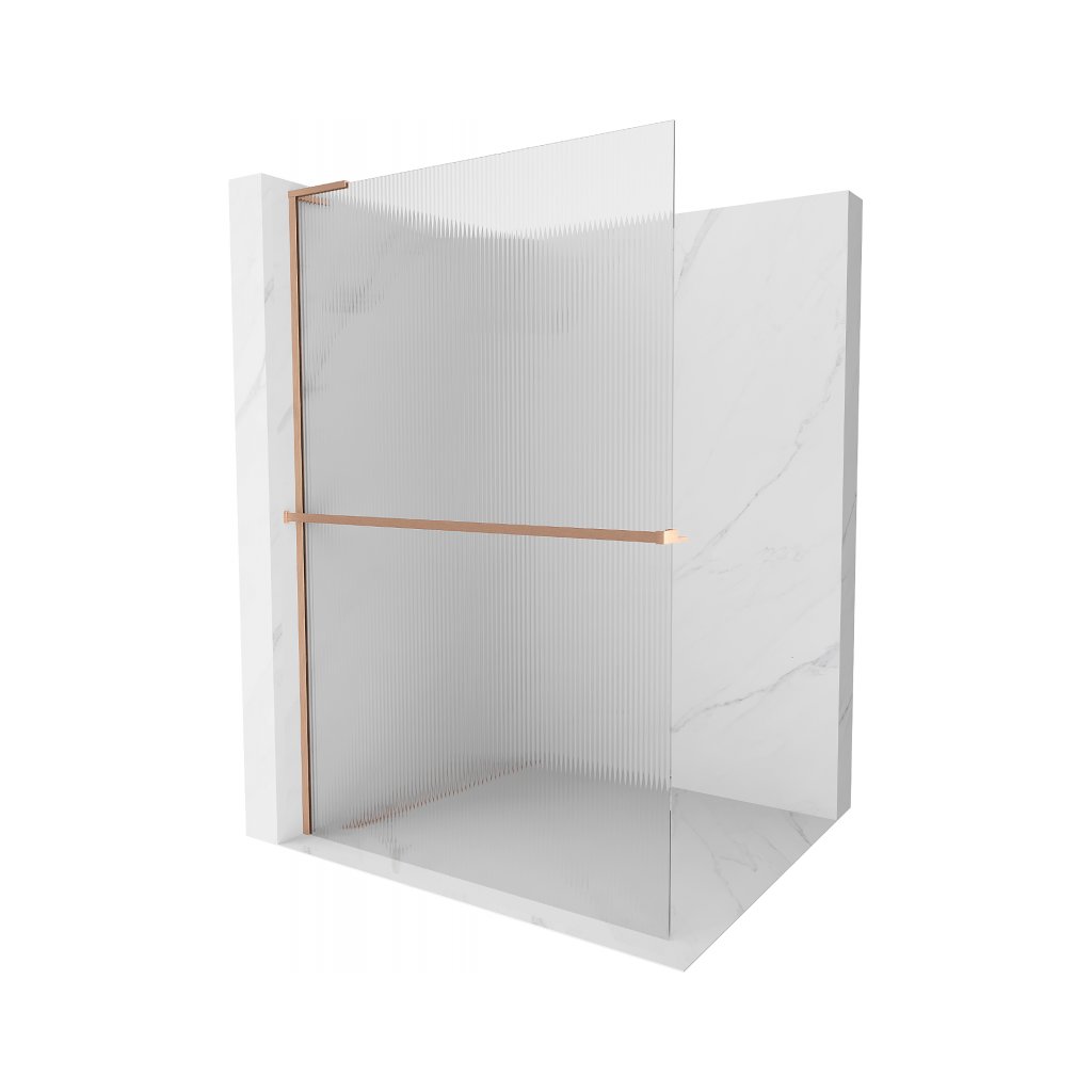 Mexen Kioto+ L, sprchová zástena Walk-In s poličkou a vešiakom 120 x 200 cm, 8mm sklo s rebrovým vzorom, medený matný profil, 800-120-123-65-09
