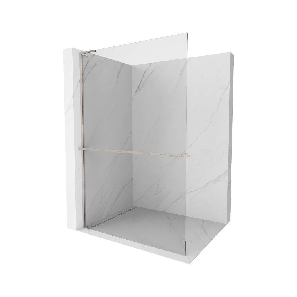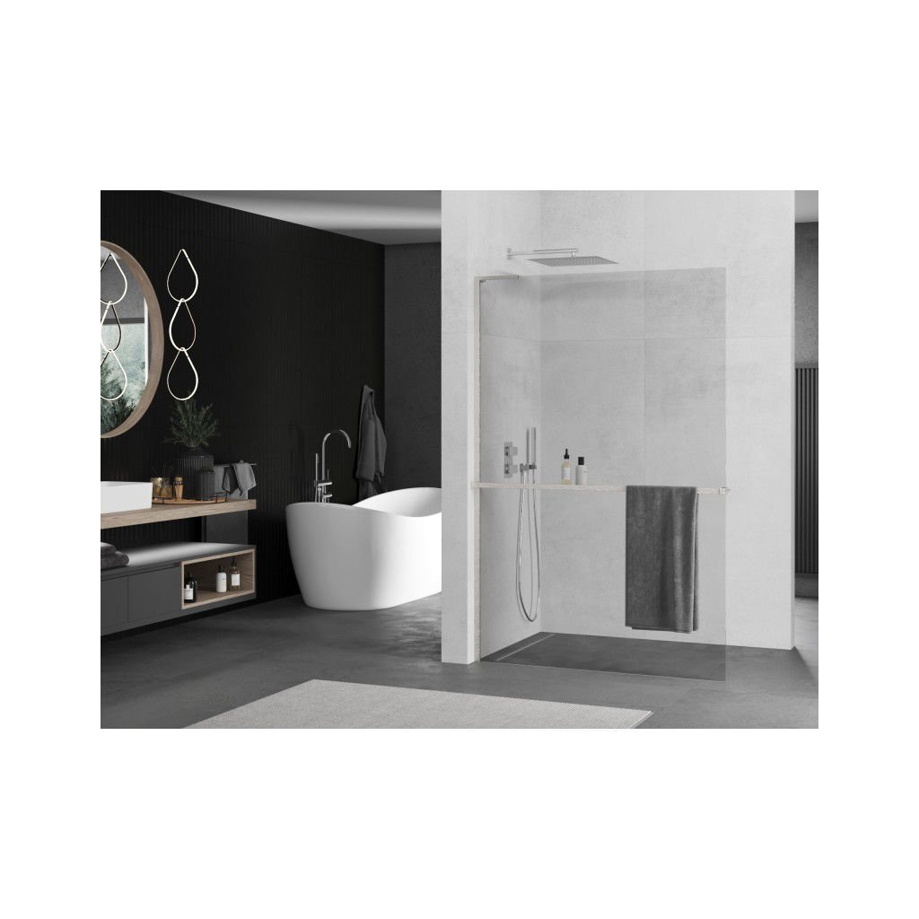 Mexen Kioto+ L, sprchová zástena Walk-In s poličkou a vešiakom 65 x 200 cm, 8mm číre sklo, brúsená oceľ profil, 800-065-123-97-00