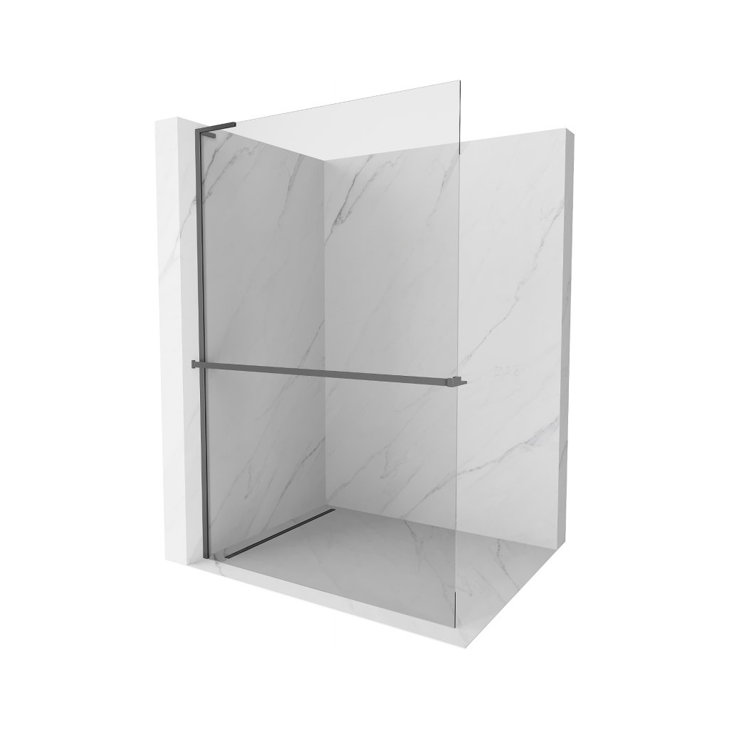 Mexen Kioto+ L, sprchová zástena Walk-In s poličkou a vešiakom 70 x 200 cm, 8mm číre sklo, grafitový profil, 800-070-123-95-00