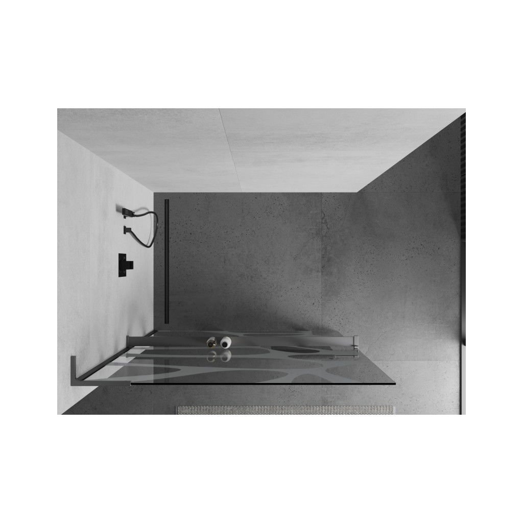 Mexen Kioto+ L, sprchová zástena Walk-In s poličkou a vešiakom 70 x 200 cm, 8mm číre sklo biely vzor, grafitový profil, 800-070-123-95-97