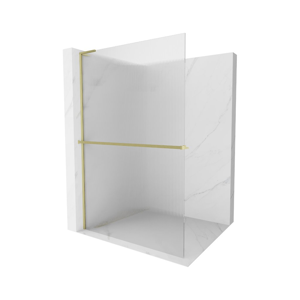 Mexen Kioto+ L, sprchová zástena Walk-In s poličkou a vešiakom 70 x 200 cm, 8mm sklo s rebrovým vzorom, zlatý matný profil, 800-070-123-55-09