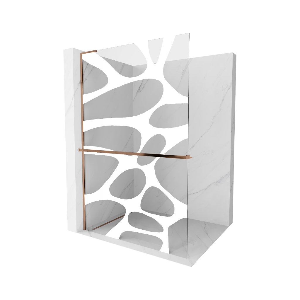Mexen Kioto+ L, sprchová zástena Walk-In s poličkou a vešiakom 80 x 200 cm, 8mm číre sklo biely vzor, ružové zlato profil, 800-080-123-60-97