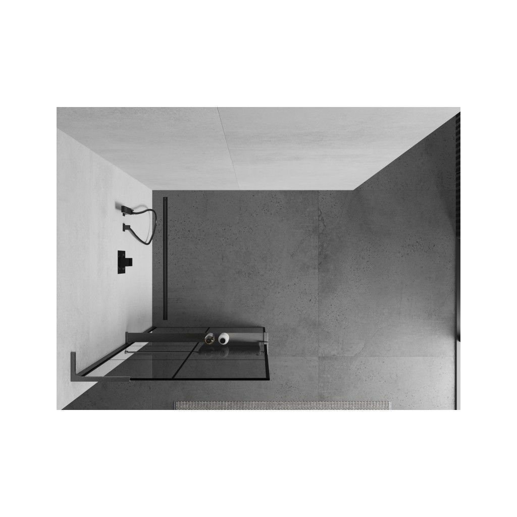 Mexen Kioto+ L, sprchová zástena Walk-In s poličkou a vešiakom 80 x 200 cm, 8mm číre sklo čierny vzor, grafitový profil, 800-080-123-66-77