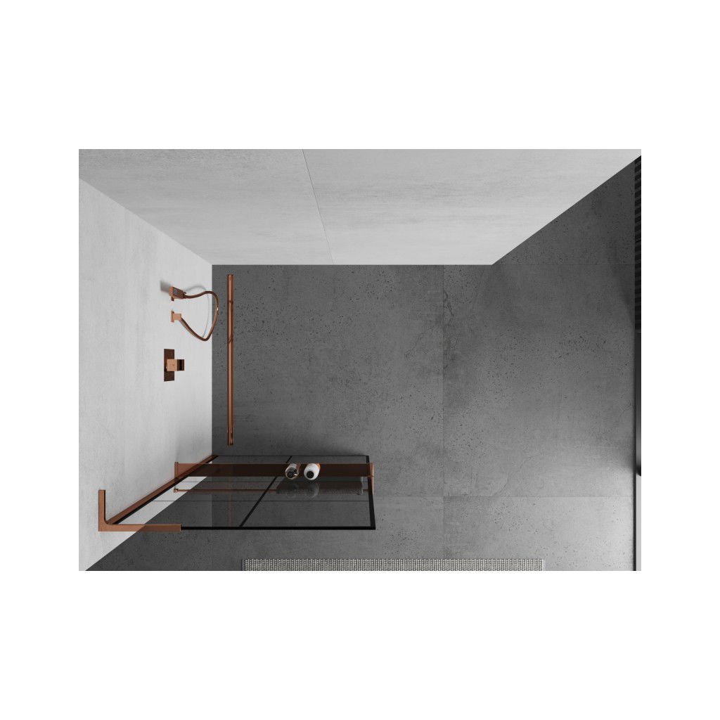 Mexen Kioto+ L, sprchová zástena Walk-In s poličkou a vešiakom 80 x 200 cm, 8mm číre sklo čierny vzor, ružové zlato profil, 800-080-123-60-77