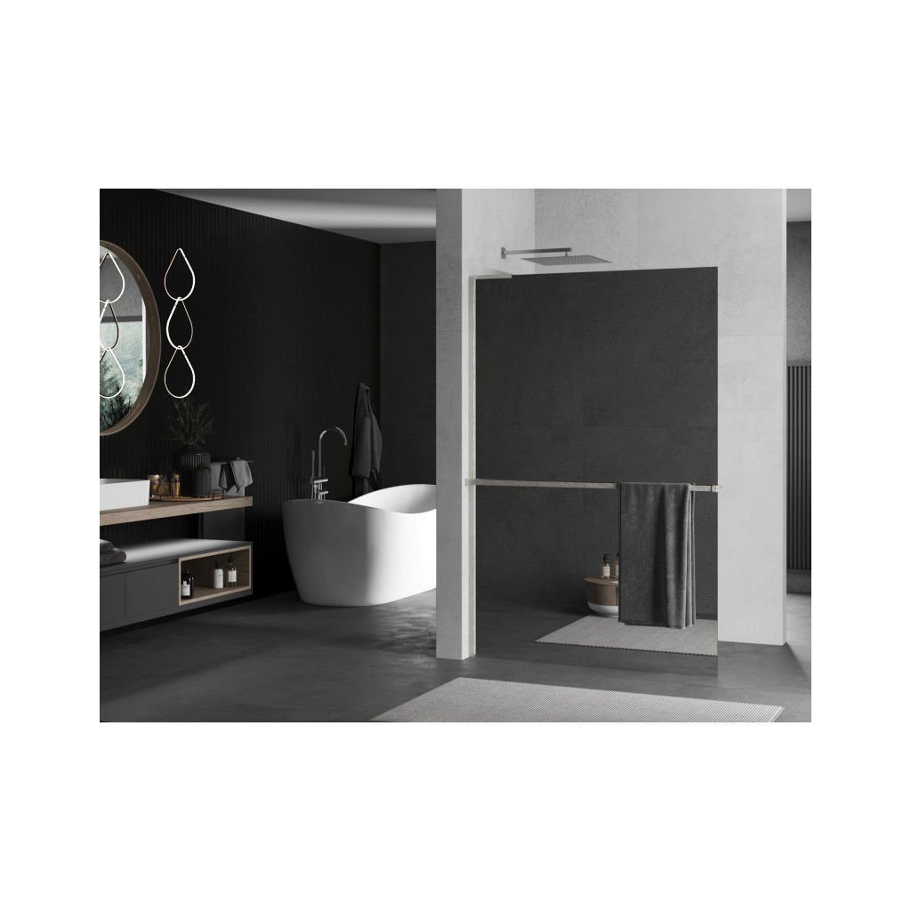 Mexen Kioto+ L, sprchová zástena Walk-In s poličkou a vešiakom 80 x 200 cm, 8mm sklo vzor zrkadlo, brúsená oceľ profil, 800-080-123-97-50