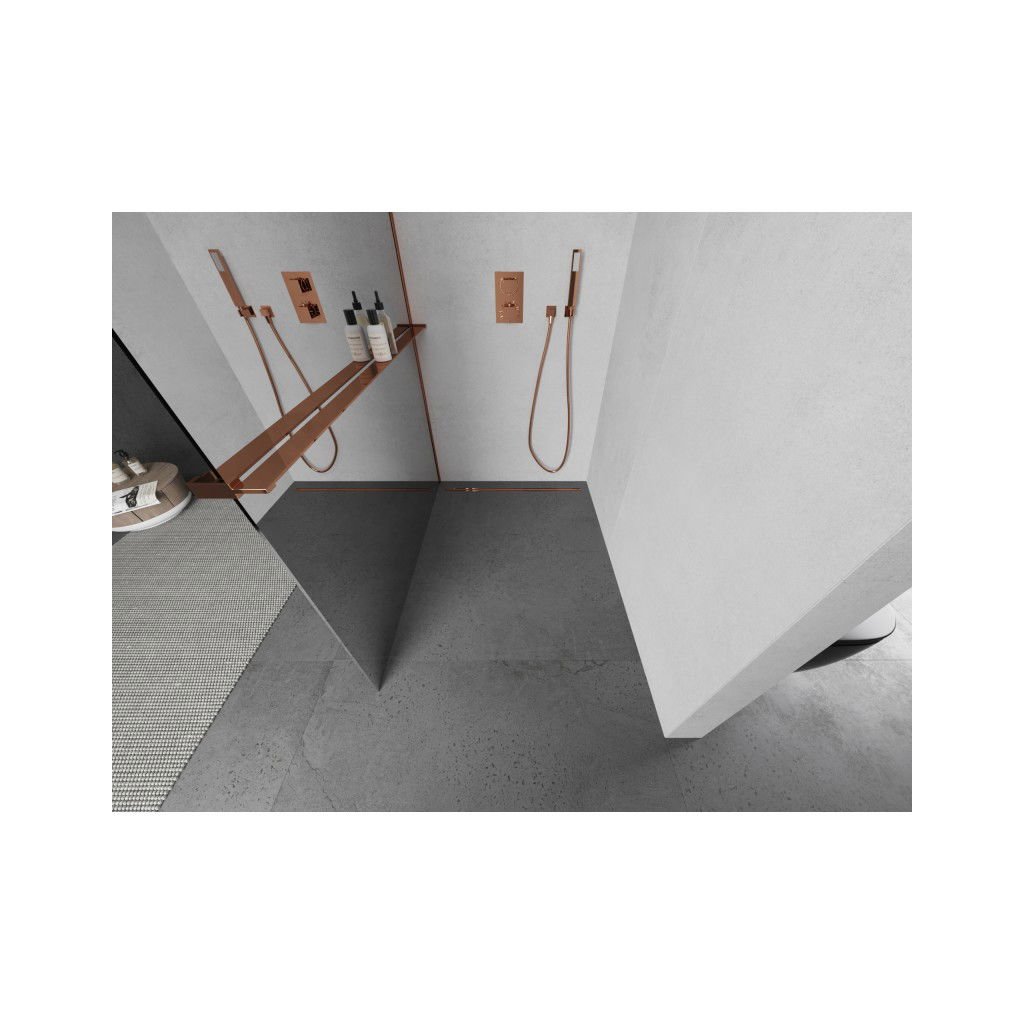 Mexen Kioto+ L, sprchová zástena Walk-In s poličkou a vešiakom 90 x 200 cm, 8mm sklo vzor zrkadlo, ružové zlato profil, 800-090-123-60-50