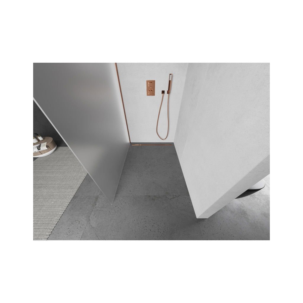 Mexen Kioto, sprchová zástena 140x200 cm, 8mm sklo s efektom námrazy, profil ružové zlato, 800-140-101-60-30
