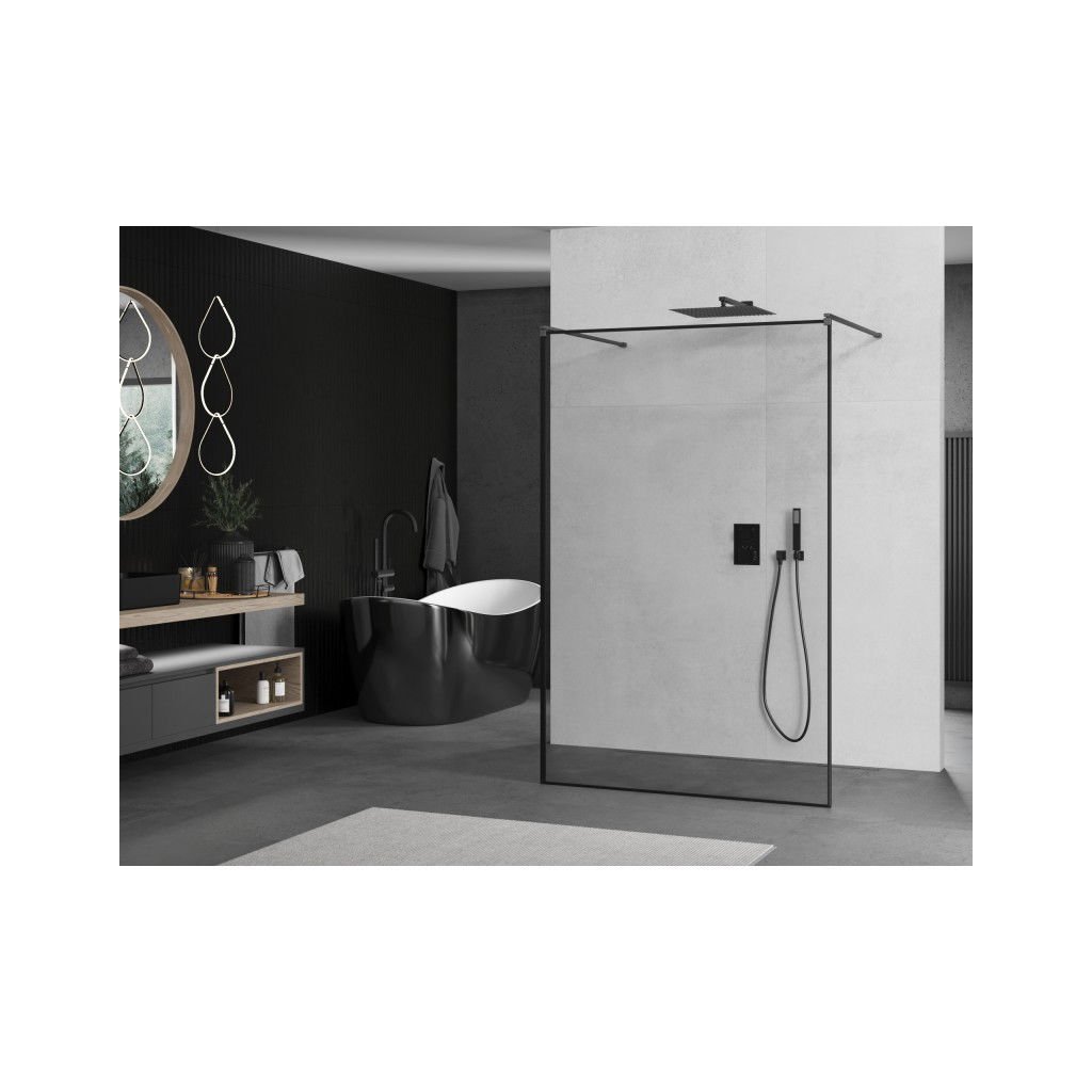 Mexen Kioto, sprchová zástena Walk-In 100 x 200 cm, 8mm číre sklo čierny vzor, grafitový profil, 800-100-002-95-70