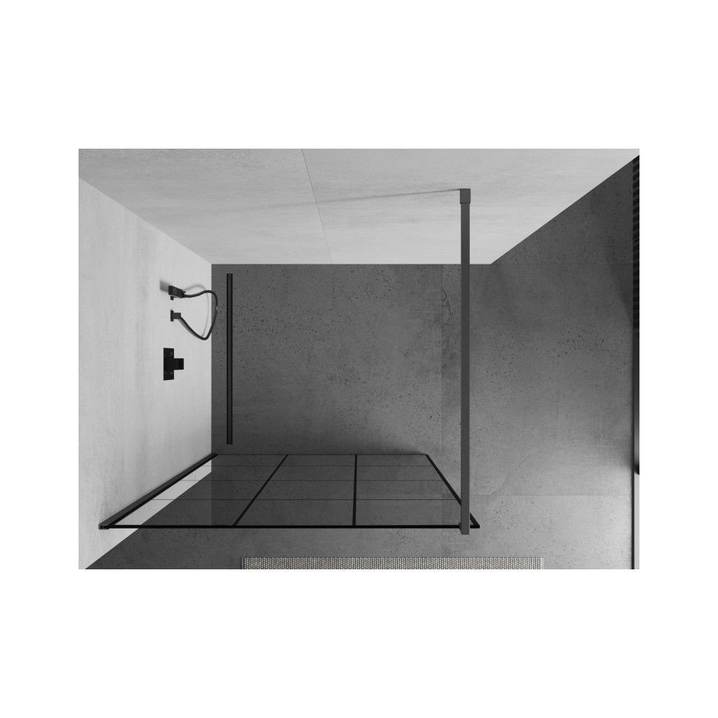 Mexen Kioto, sprchová zástena Walk-In 100 x 200 cm, 8mm číre sklo čierny vzor, grafitový profil, 800-100-101-95-77
