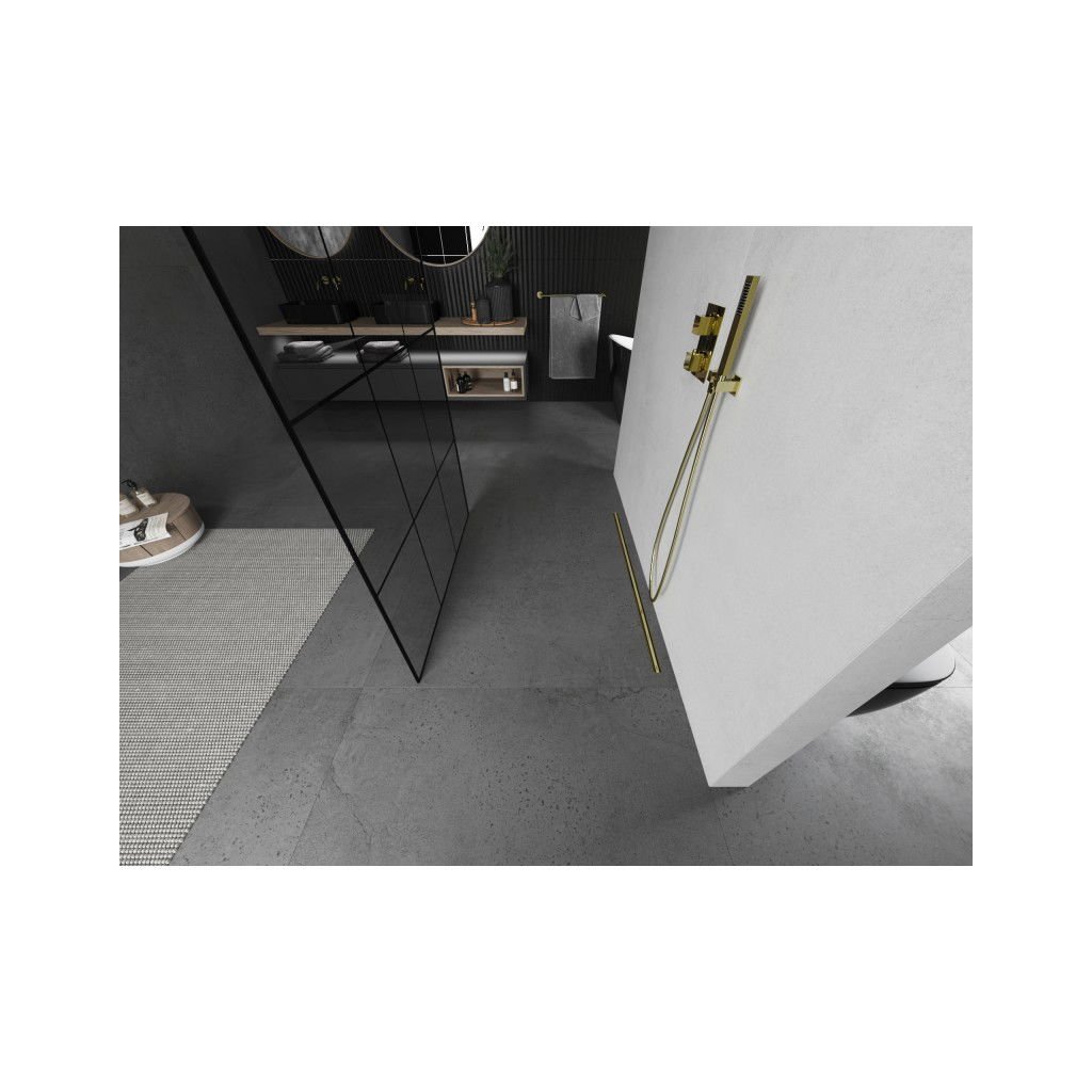 Mexen Kioto, sprchová zástena Walk-In 100 x 200 cm, 8mm sklo čierny vzor, zlatý matný profil, 800-100-002-55-77