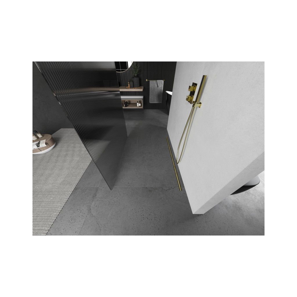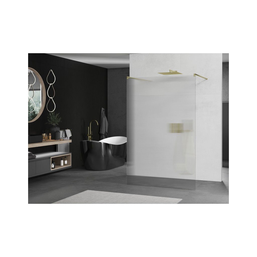 Mexen Kioto, sprchová zástena Walk-In 100 x 200 cm, 8mm sklo s rebrovým vzorom, zlatý matný profil, 800-100-002-55-09