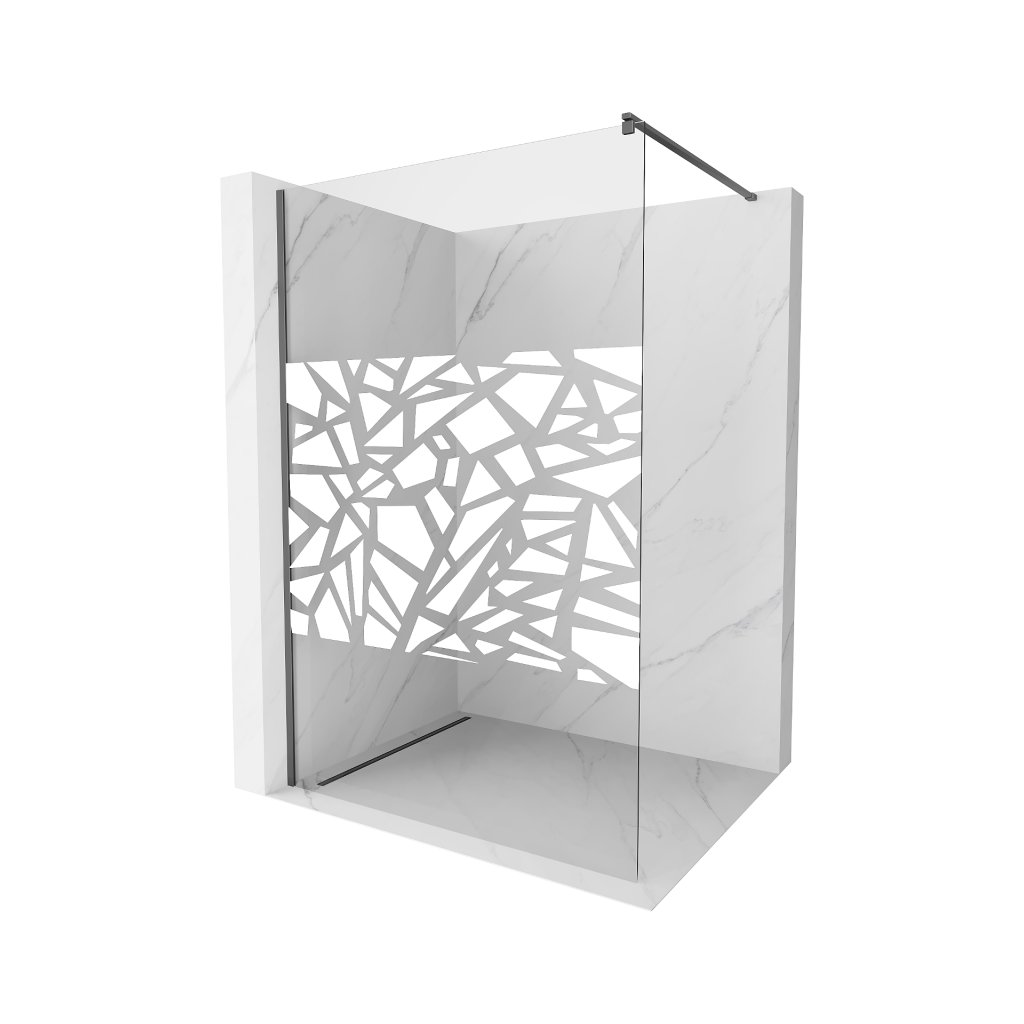 Mexen Kioto, sprchová zástena Walk-In 110 x 200 cm, 8mm číre sklo biely vzor, grafitový profil, 800-110-101-95-85
