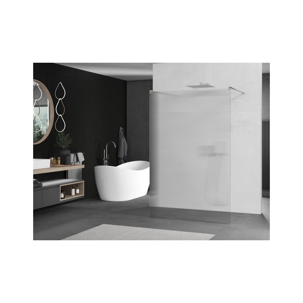 Mexen Kioto, sprchová zástena Walk-In 110 x 200 cm, 8mm sklo s rebrovým vzorom, brúsená oceľ profil, 800-110-002-97-09