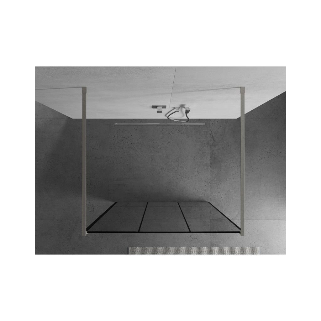 Mexen Kioto, sprchová zástena Walk-In 120 x 200 cm, 8mm sklo čierny vzor, brúsená oceľ profil, 800-120-002-97-77