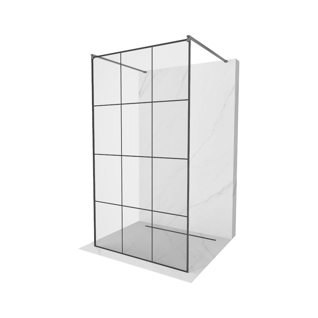 Mexen Kioto, sprchová zástena Walk-In 120 x 200 cm, 8mm sklo čierny vzor, grafitový profil, 800-120-002-66-77