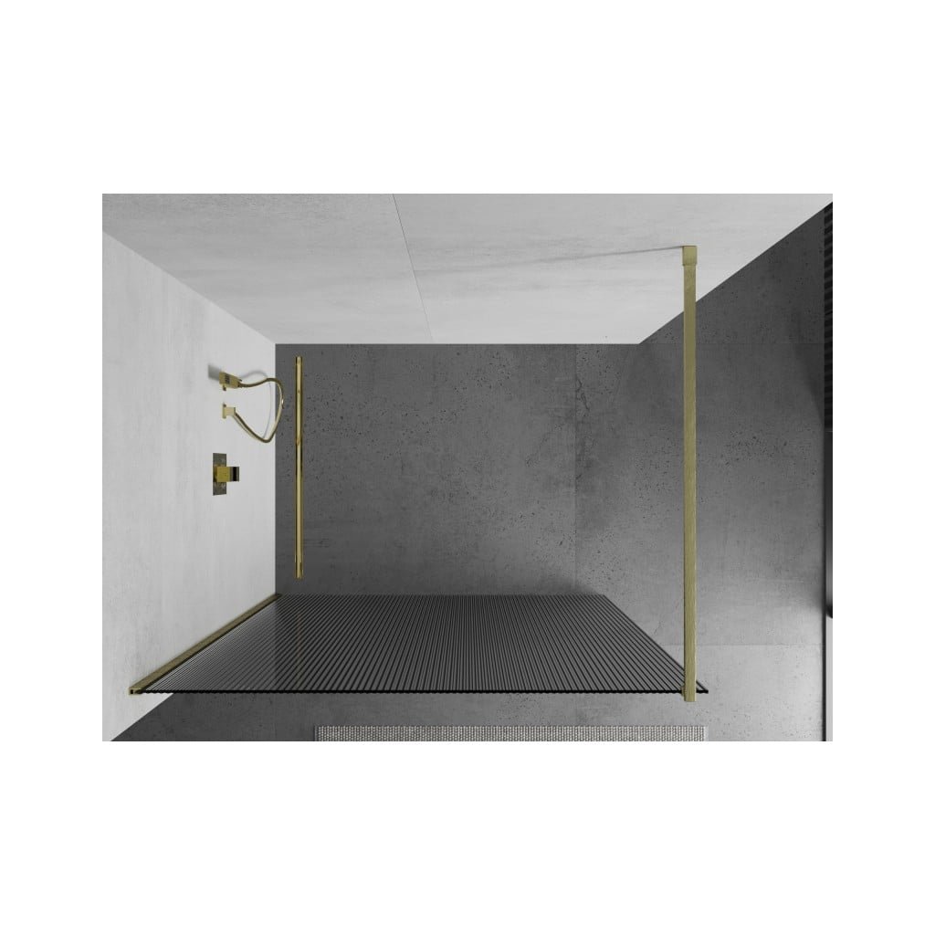 Mexen Kioto, sprchová zástena Walk-In 120 x 200 cm, 8mm sklo s rebrovým vzorom, zlatý matný profil, 800-120-101-55-09