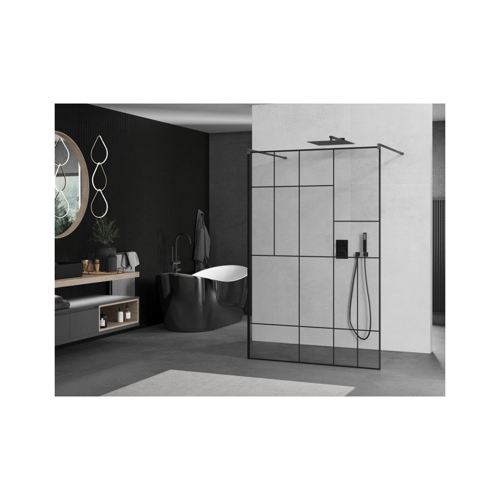 Mexen Kioto, sprchová zástena Walk-In 130 x 200 cm, 8mm číre sklo čierny vzor, grafitový profil, 800-130-002-95-78