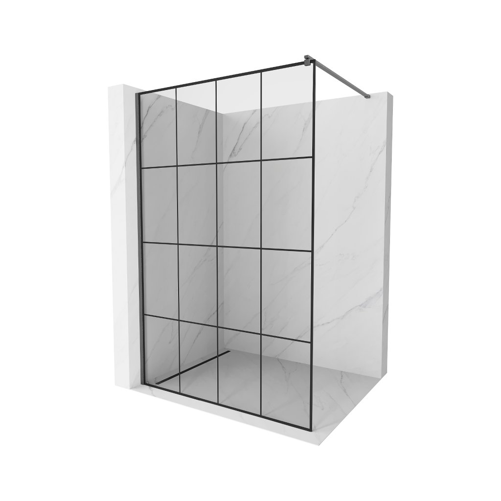 Mexen Kioto, sprchová zástena Walk-In 130 x 200 cm, 8mm číre sklo čierny vzor, grafitový profil, 800-130-101-66-77