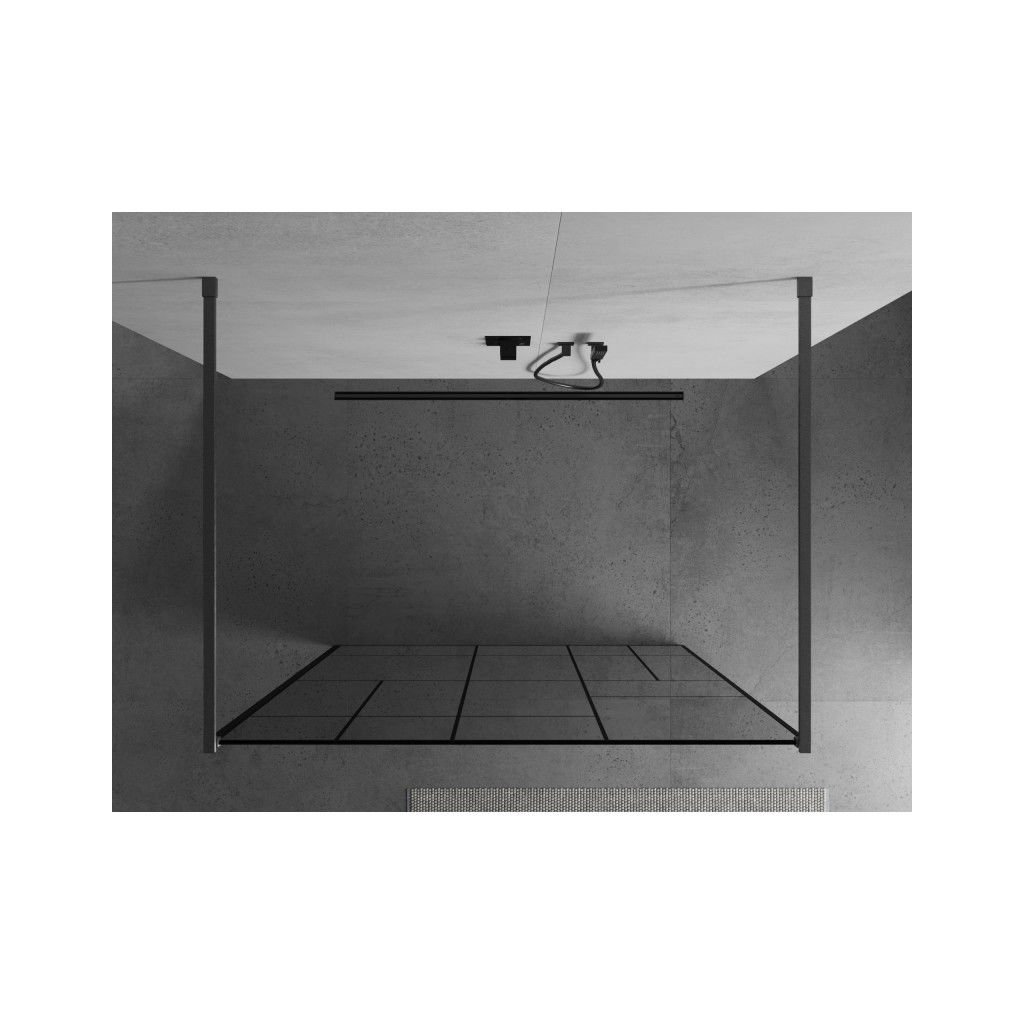 Mexen Kioto, sprchová zástena Walk-In 130 x 200 cm, 8mm sklo čierny vzor, grafitový profil, 800-130-002-66-78
