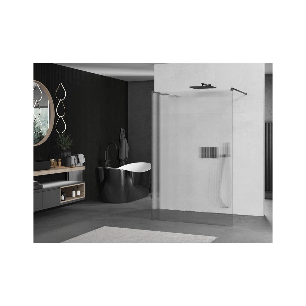Mexen Kioto, sprchová zástena Walk-In 130 x 200 cm, 8mm sklo s rebrovým vzorom, grafitový profil, 800-130-002-95-09