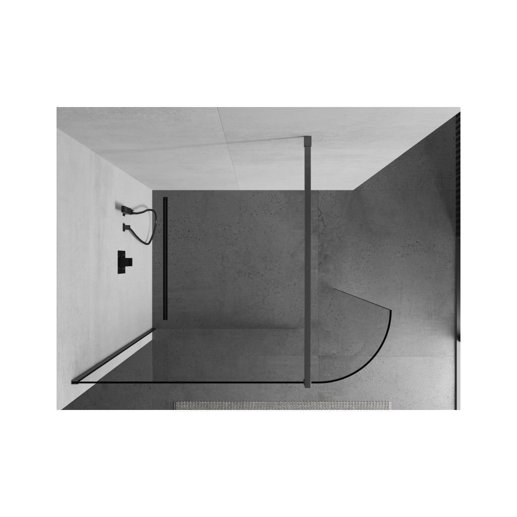 Mexen Kioto, sprchová zástena Walk-In 140 x 200 cm, 8mm číre sklo, grafitový profil, 800-140-101-66-06