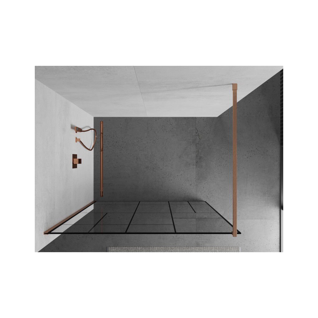 Mexen Kioto, sprchová zástena Walk-In 140 x 200 cm, 8mm číre sklo čierny vzor, medený matný profil, 800-140-101-65-78