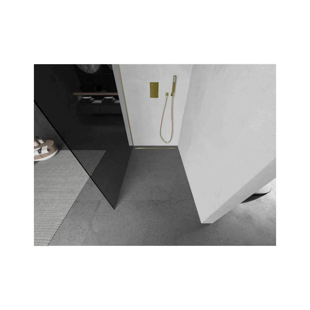 Mexen Kioto, sprchová zástena Walk-In 140 x 200 cm, 8mm šedé sklo, zlatý matný profil, 800-140-101-55-40