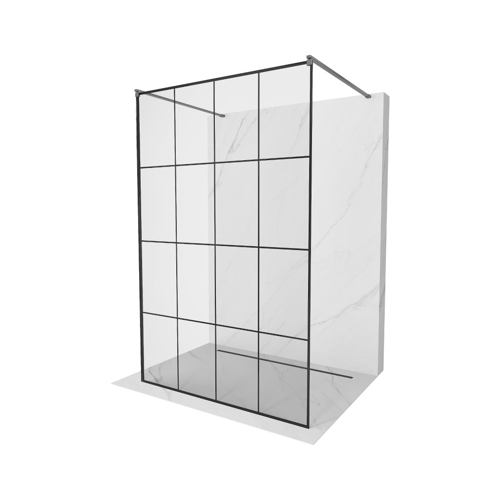 Mexen Kioto, sprchová zástena Walk-In 140 x 200 cm, 8mm sklo čierny vzor, grafitový profil, 800-140-002-66-77