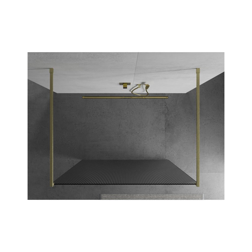 Mexen Kioto, sprchová zástena Walk-In 140 x 200 cm, 8mm sklo s rebrovým vzorom, zlatý matný profil, 800-140-002-55-09