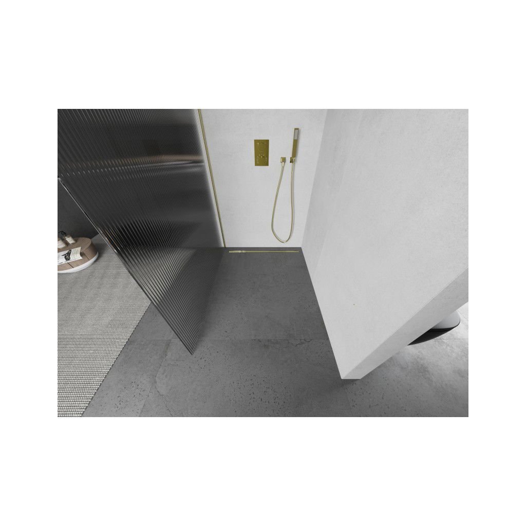 Mexen Kioto, sprchová zástena Walk-In 140 x 200 cm, 8mm sklo s rebrovým vzorom, zlatý matný profil, 800-140-101-55-09