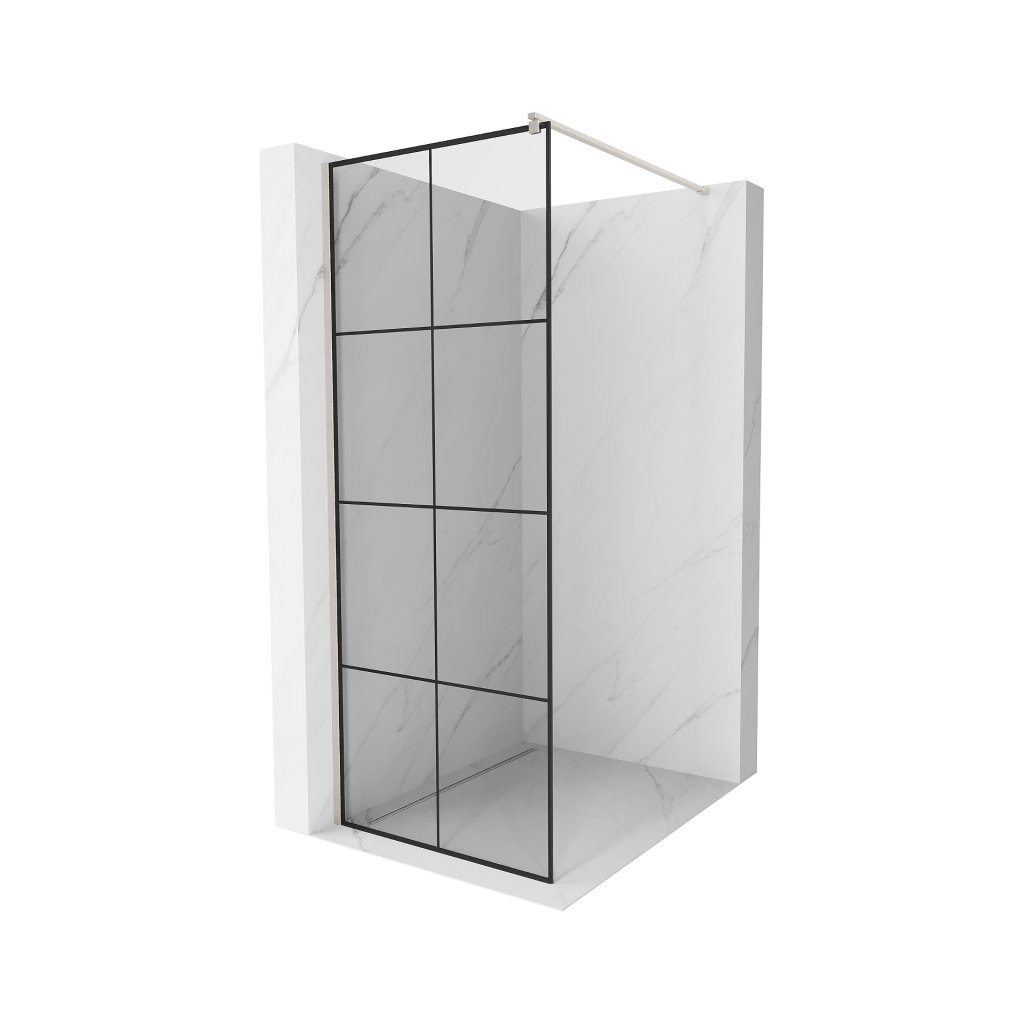Mexen Kioto, sprchová zástena Walk-In 70 x 200 cm, 8mm číre sklo čierny vzor, brúsená oceľ profil, 800-070-101-97-77