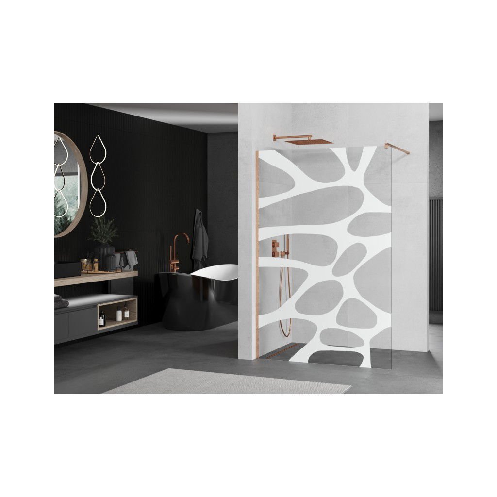 Mexen Kioto, sprchová zástena Walk-In 80 x 200 cm, 8mm číre sklo biely vzor, medený matný profil, 800-080-101-65-97