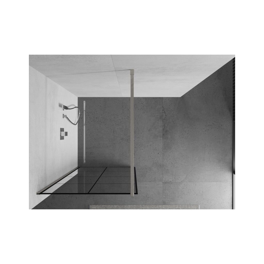 Mexen Kioto, sprchová zástena Walk-In 80 x 200 cm, 8mm číre sklo čierny vzor, brúsená oceľ profil, 800-080-101-97-77