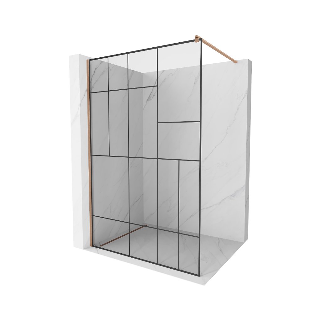 Mexen Kioto, sprchová zástena Walk-In 80 x 200 cm, 8mm číre sklo čierny vzor, medený matný profil, 800-080-101-65-78