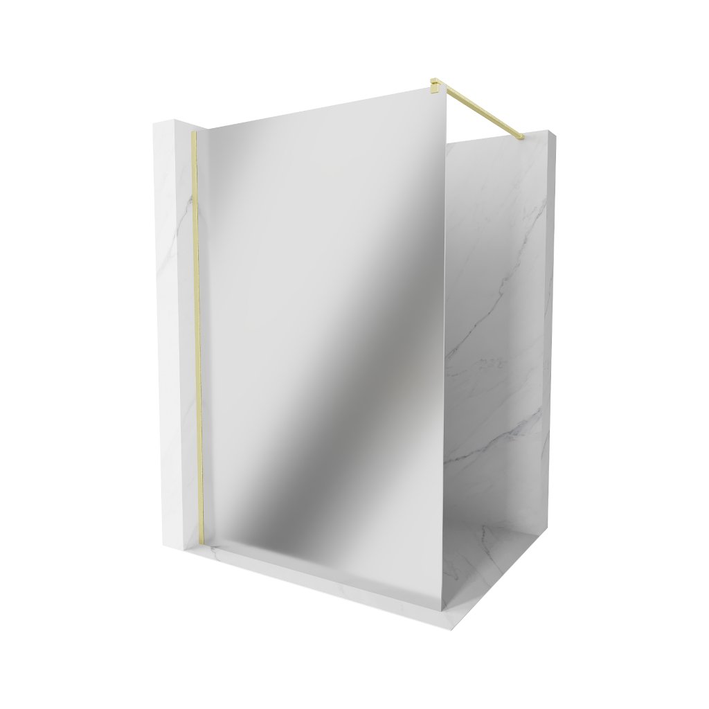 Mexen Kioto, sprchová zástena Walk-In 80 x 200 cm, 8mm sklo vzor zrkadlo, zlatý matný profil, 800-080-101-55-50