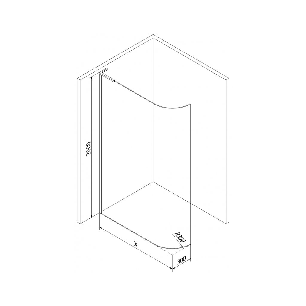 Mexen Kioto L, sprchová zástena Walk-In 100 x 200 cm, 8mm číre sklo, biely profil, 800-100-103-20-06