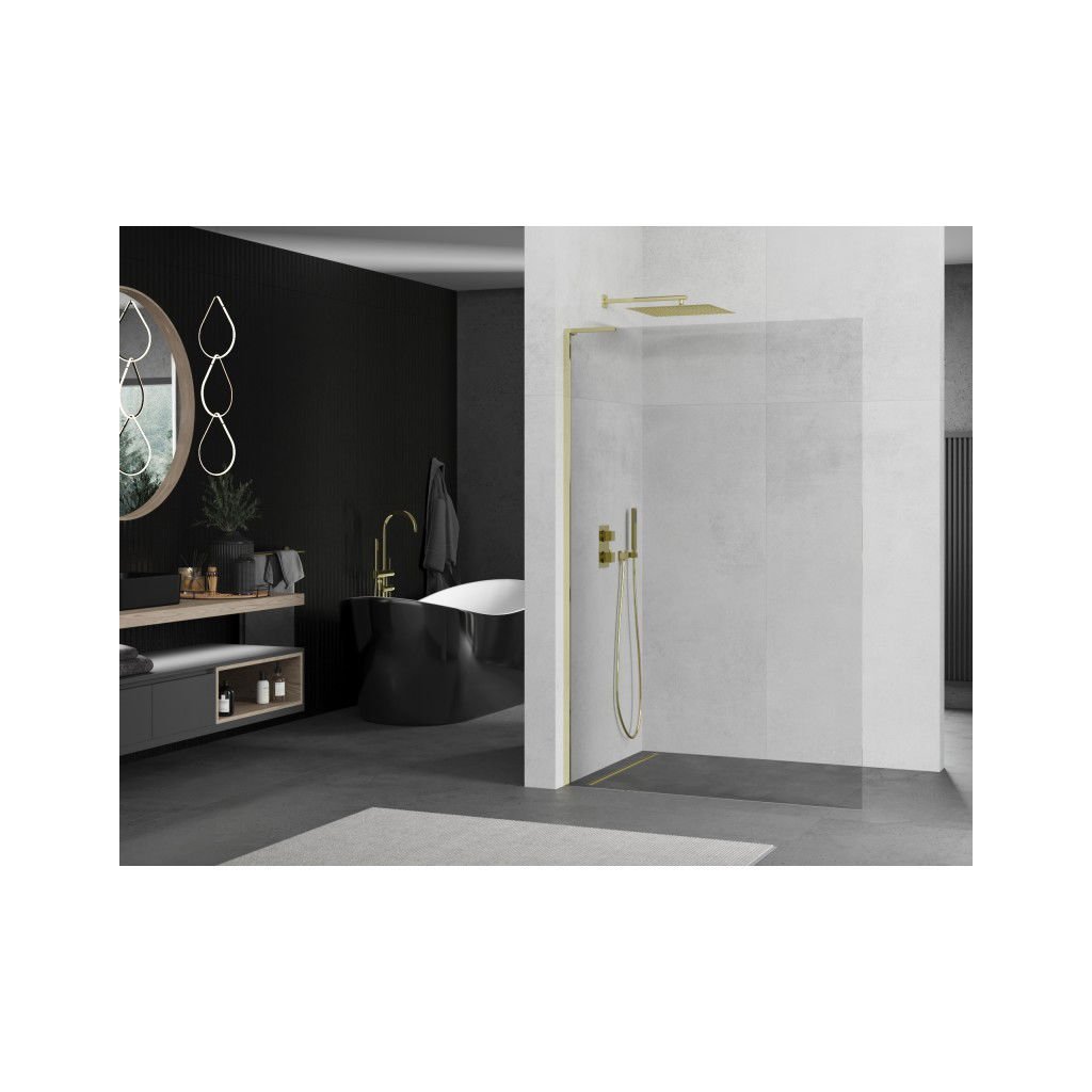 Mexen Kioto L, sprchová zástena Walk-In 100 x 200 cm, 8mm číre sklo, zlatý lesklý profil,800-100-103-50-00