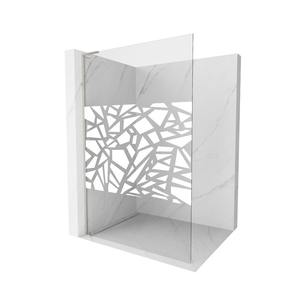 Mexen Kioto L, sprchová zástena Walk-In 100 x 200 cm, 8mm číre sklo biely vzor, brúsená oceľ profil, 800-100-103-97-85