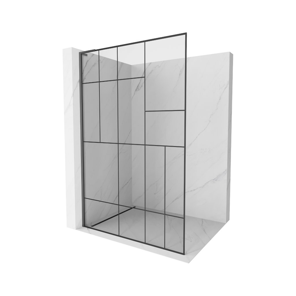 Mexen Kioto L, sprchová zástena Walk-In 100 x 200 cm, 8mm číre sklo čierny vzor, grafitový profil, 800-100-103-95-78